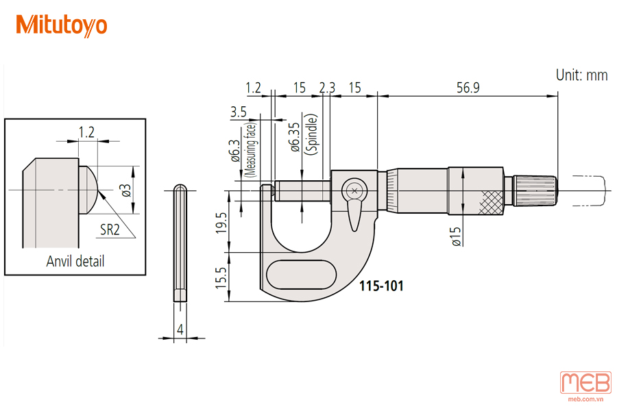 | 395-271-30 | 0-25 | 0.001 | ±2 µm | Ø 15 | Spherical Anvil and Spindle Type |