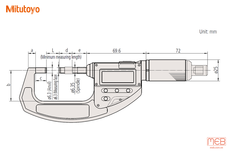 | Mã đặt hàng | Dải đo (mm) | Độ chia (mm) | Sai số tối đa cho phép | Trọng lượng (g) |