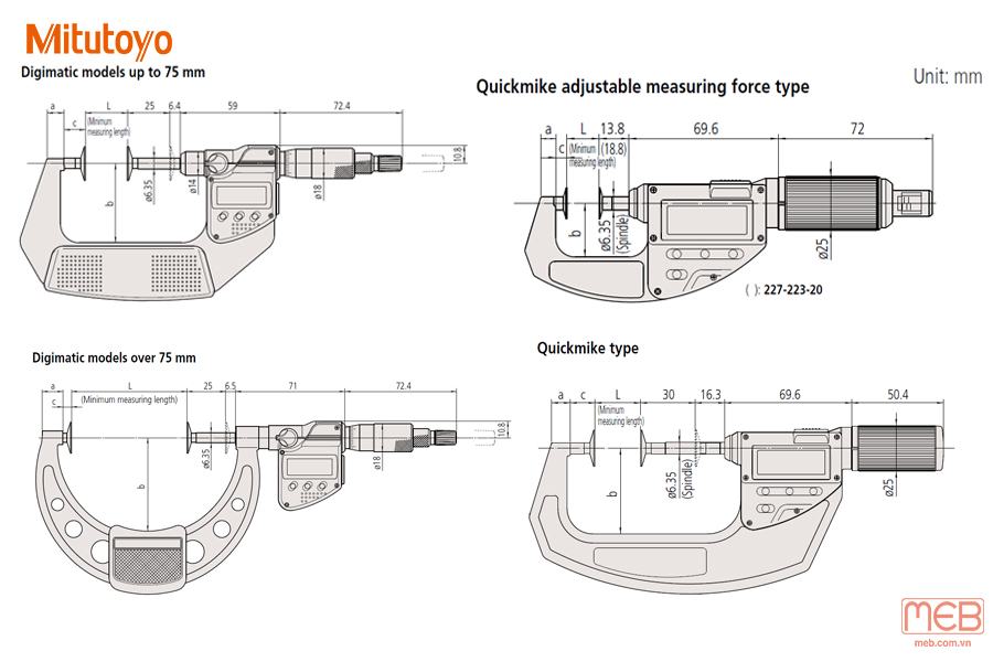 | 227-223-20 | 0-10 | 0.001 | ±4µm | 14.3 | 1 | 3 | 2-10 | Quickmike type adjustable mearsuring force (LCD) |